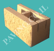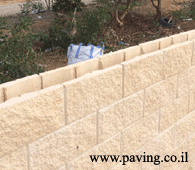 בלוק מבטון במידה 39/19/19 ( אחרי הביקוע. ) שתהליך הביקוע יצר לו צורה חיצונית כמו אבן טבעית מבוקעת/סלע.